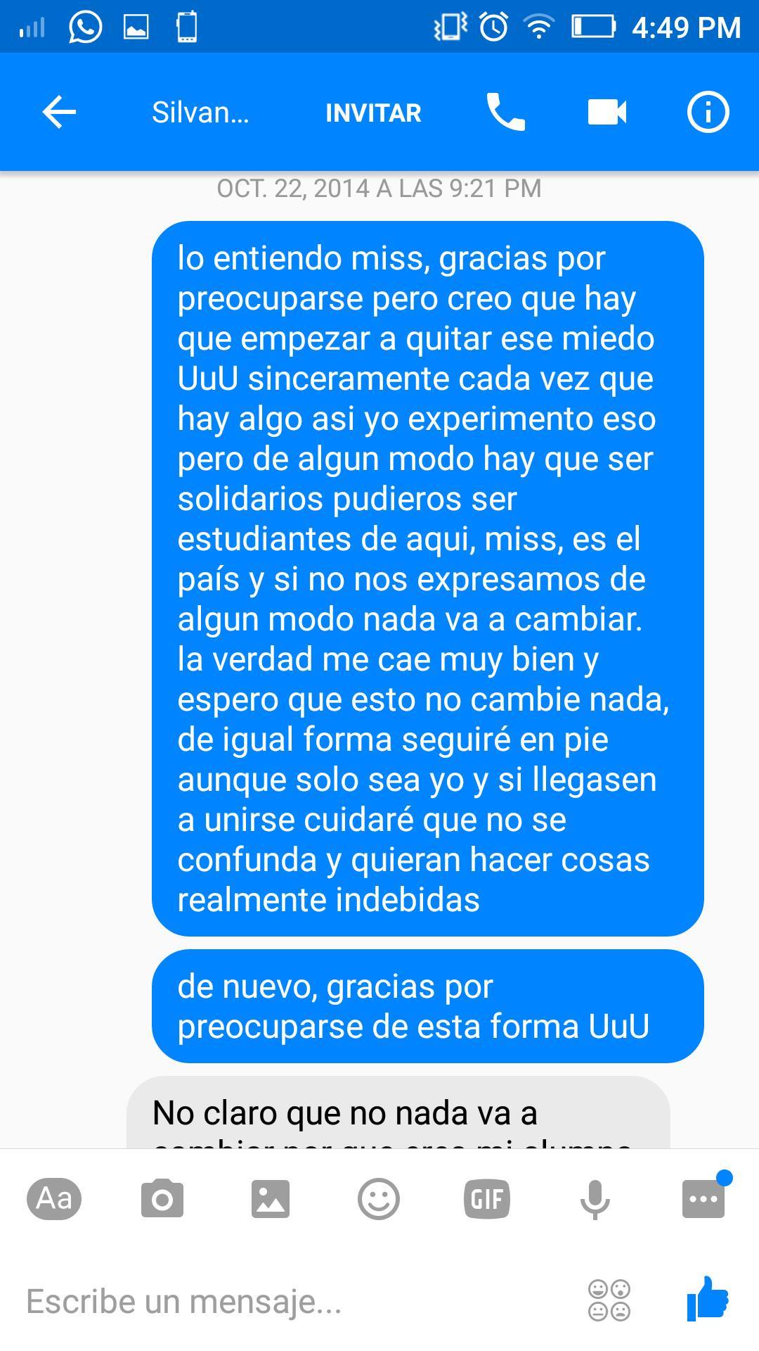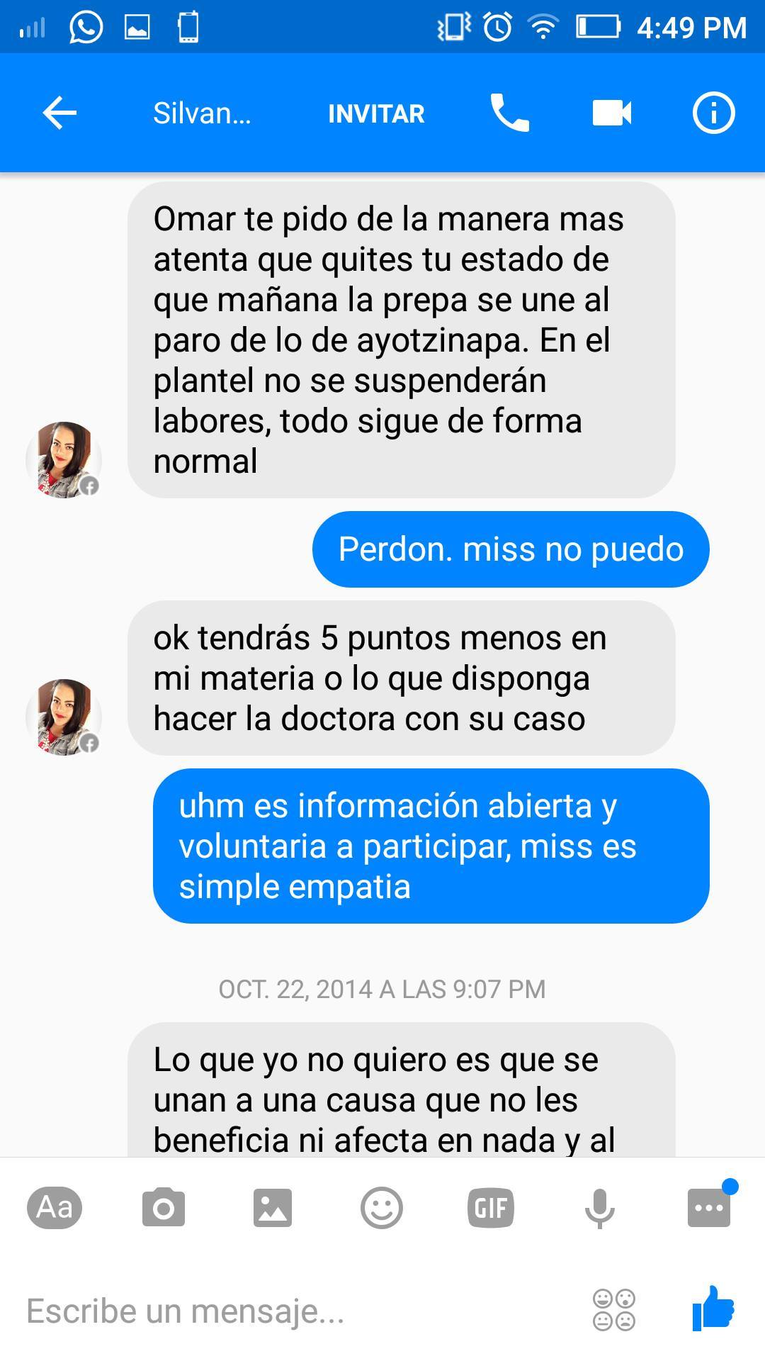 Después le comenté sobre los castigos en la prepa 3 y en las fotos se ve lo que me contestó