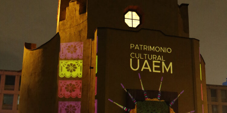 En la Capilla Exenta de la ciudad de Toluca, estudiantes de la Facultad de Artes de la Universidad Autónoma del Estado de México realizaron la proyección de un videomapping con motivo de la celebración de Día de Muertos.