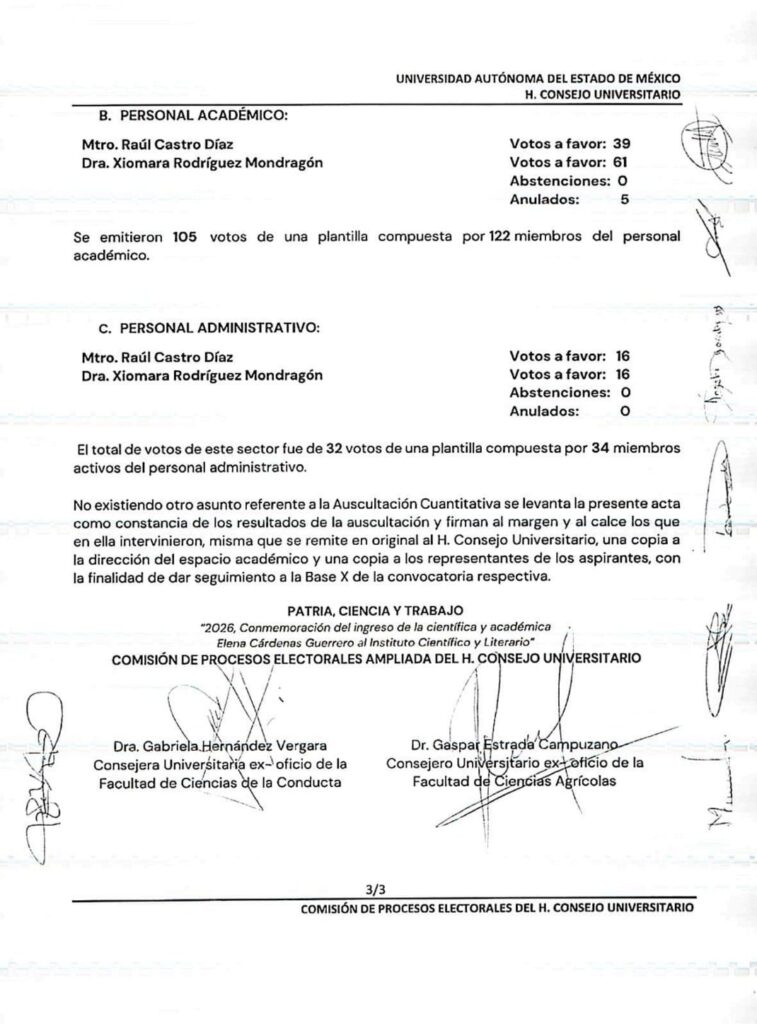 El acta fue remitida al H. Consejo Universitario para dar seguimiento conforme a las bases de la convocatoria, en un contexto donde la legitimidad del proceso dependerá no solo de los resultados, sino de la percepción de transparencia entre la comunidad universitaria.